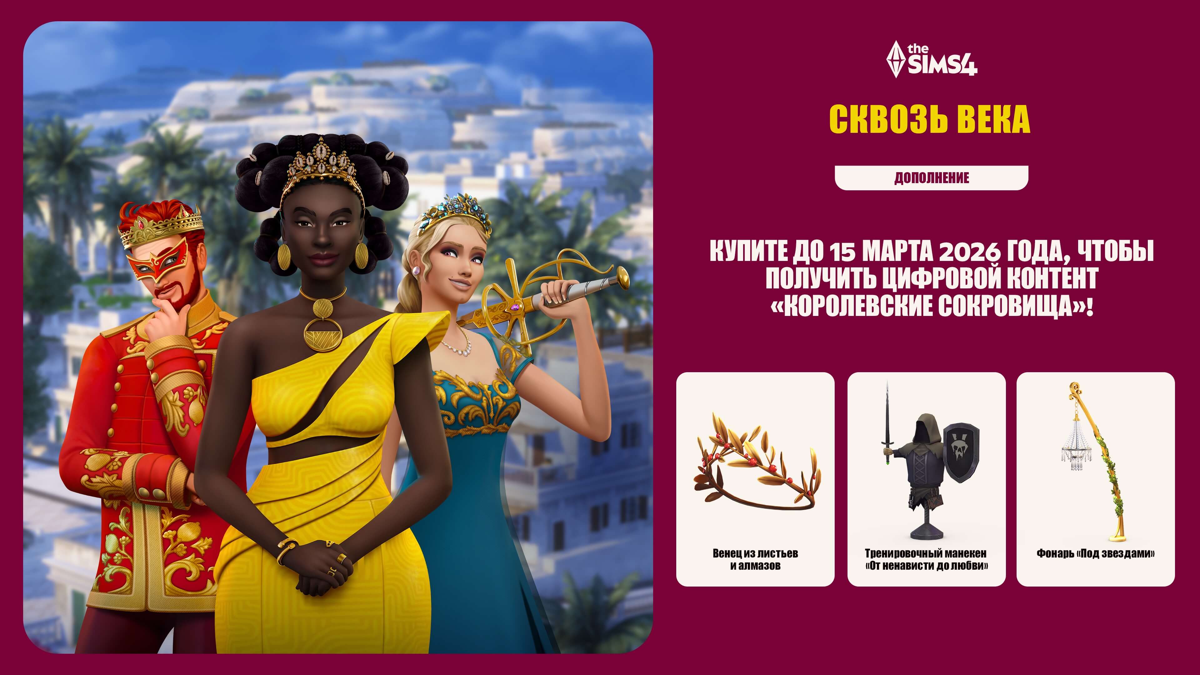 The Sims 4 - Royalty & Legacy добавляет в оригинальную игру The Sims 4 атмосферу власти, наследия и семейных традиций, где каждый сим может оставить след в истории своего рода. Контент вдохновляет на создание династий, драм, амбиций и роскошной жизни с оттенком интриг. Если хочется придать игре глубину и почувствовать вкус влияния, этот набор точно стоит купить и раскрыть новую сторону знакомого мира.